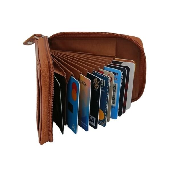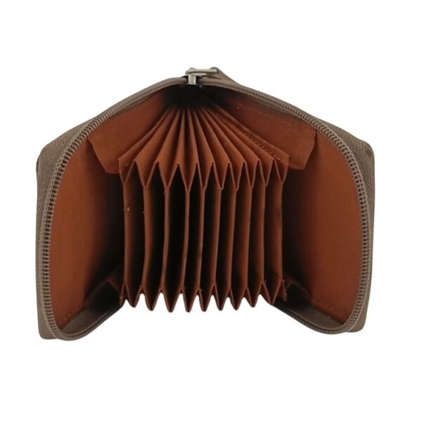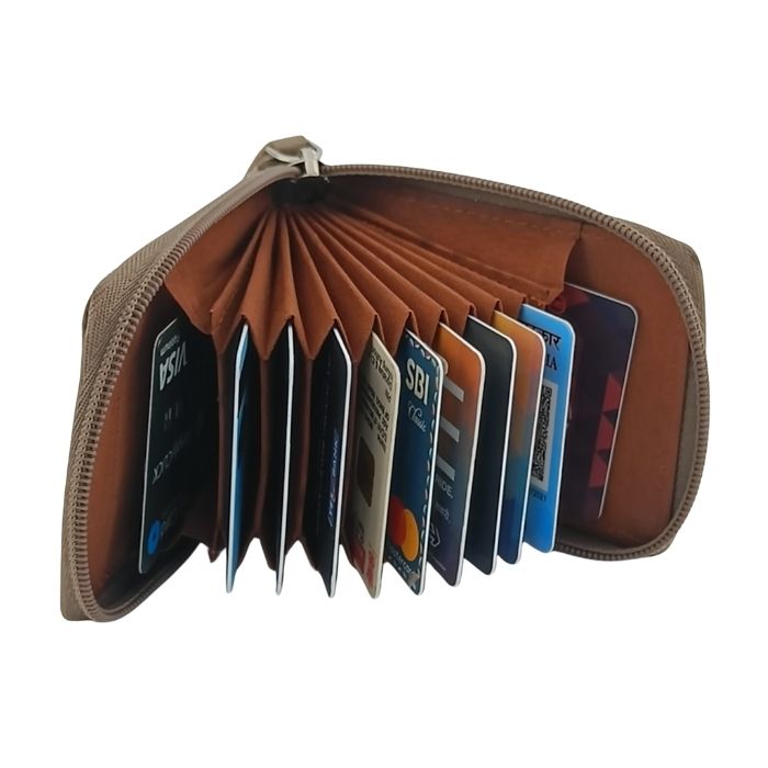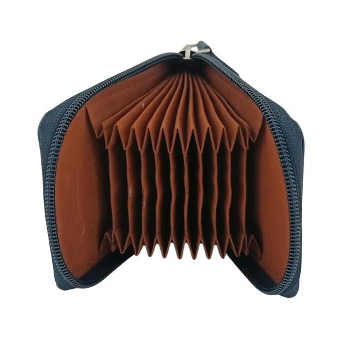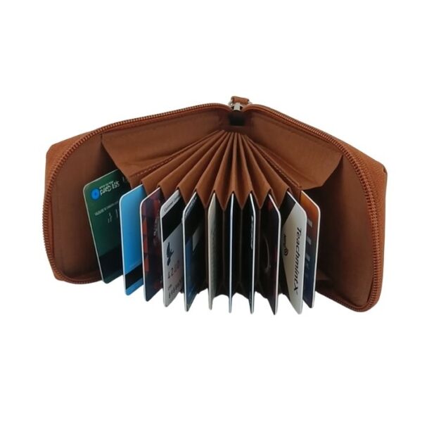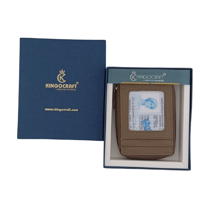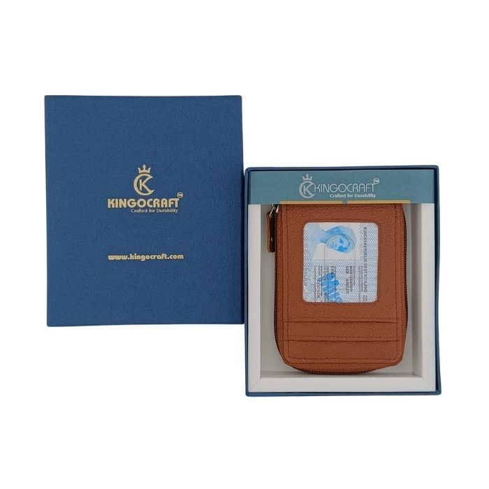 Keep your essentials organized and protected with the KingoCraft Genuine Leather RFID Protected Zip Card Holder wallet. This compact and stylish wallet features 11+ accordion cards slots, a clear ID window and RFID blocking lining. It will keep all your essentials safe and organized. This wallet is perfect for carrying IDs, debit cards, and credit cards.