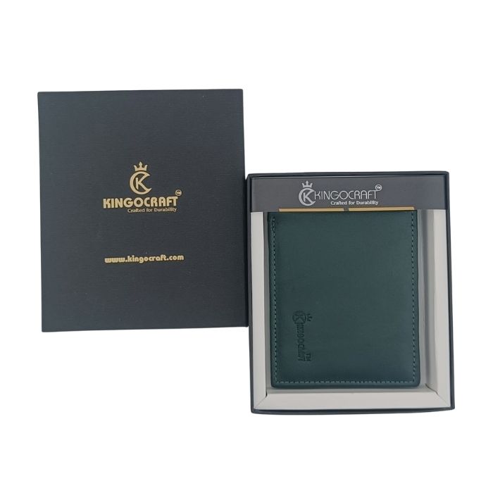 The KingoCraft is the first KingoCraft(r) authentic Leather RFID-Blocking wallet for men in which function is paired with elegance. This slim and chic bifold wallet is handcrafted with a dark, rich green finish made for men who appreciate security and style.