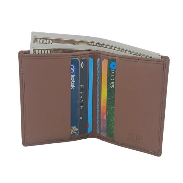 Be safe With the latest technology to block RFID that protects your cards from unauthorised scans or digital theft. It comes with eight slots for cards that can accommodate everything you need to carry around, including ID, credit/debit cards and much more. The double compartments for currency make sure your cash stays in place and are easily readily accessible.