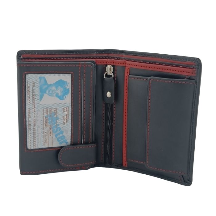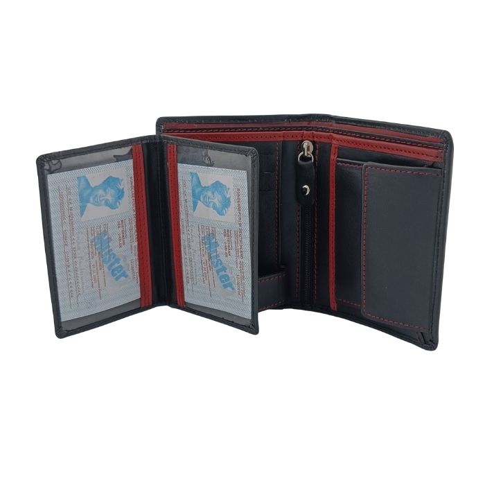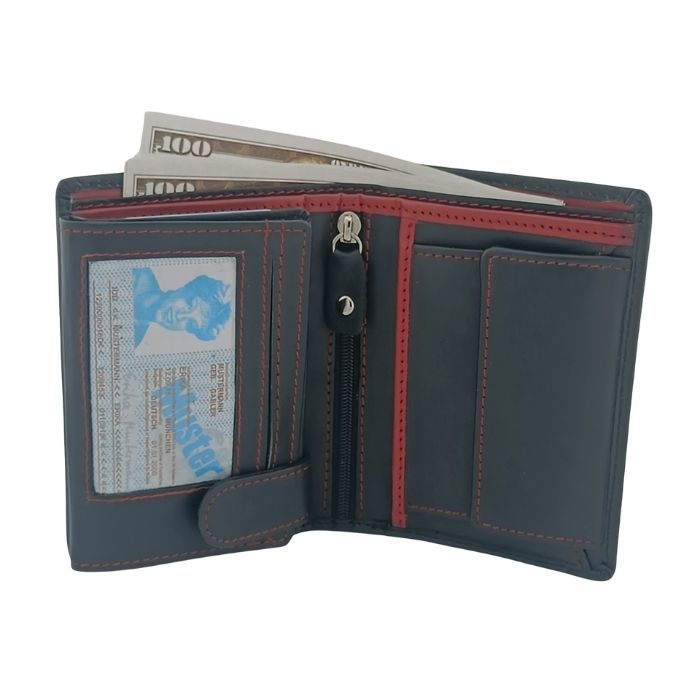 Make your everyday carry more stylish by acquiring your everyday carry by purchasing the KingoCraft RFID-secured Black Genuine Leather wallet that is a perfect mix of style, durability and security. Made of premium black leather, with a stylish contrast stitching in red This trifold wallet was made for modern-day men who require more than a standard wallet.