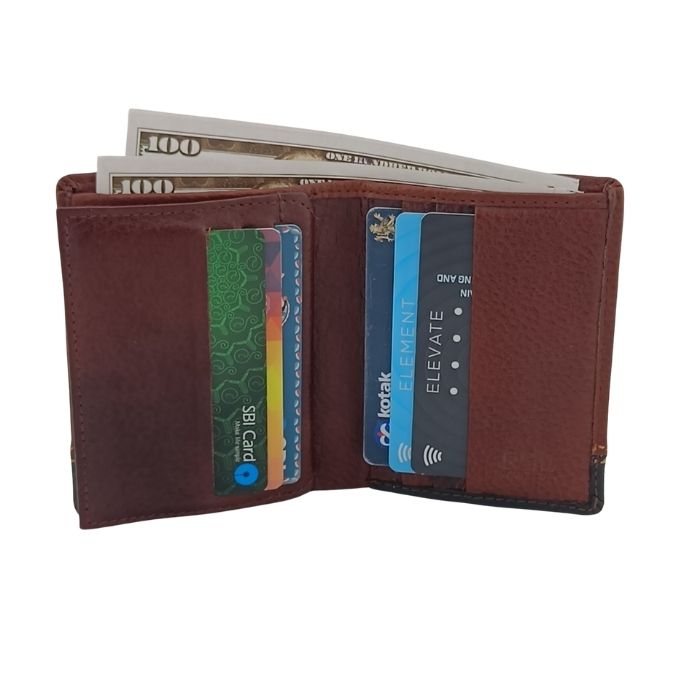 The tri-fold design offers a wide storage space that includes multiple slots for cards and an ID window that is clear, as well as a huge bill compartment that can be used for money. The integrated RFID-blocking layer makes sure your personal data is safe from theft. Despite its small size it has ample compartments that keep your daily necessities organized and easily accessible.