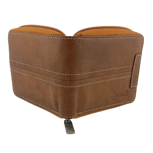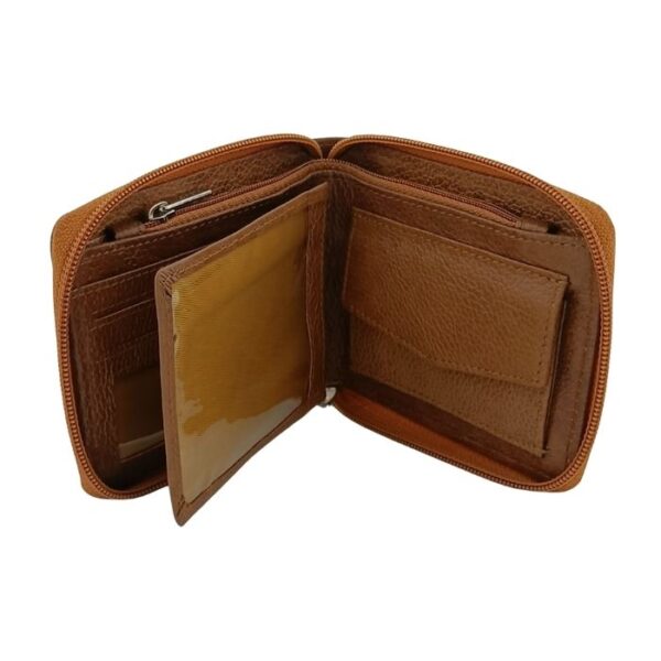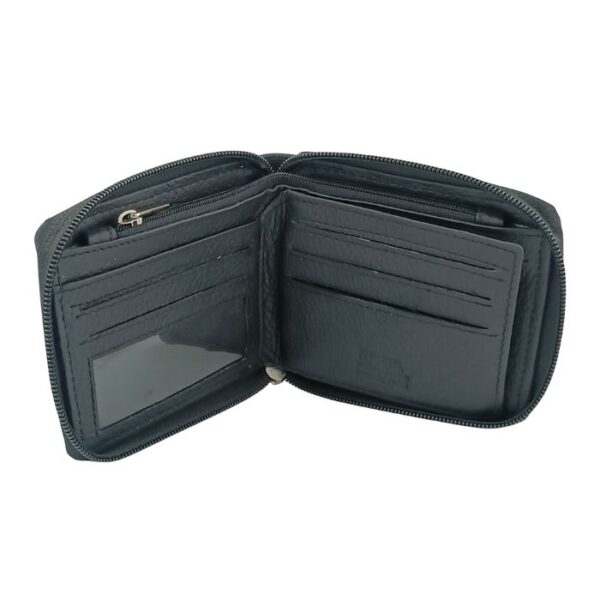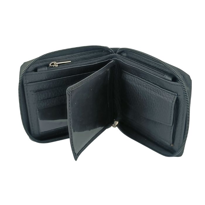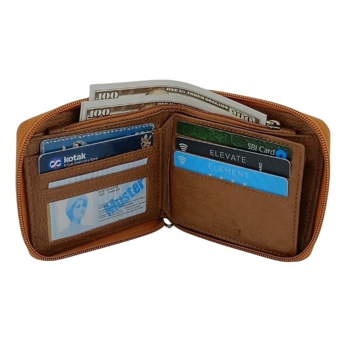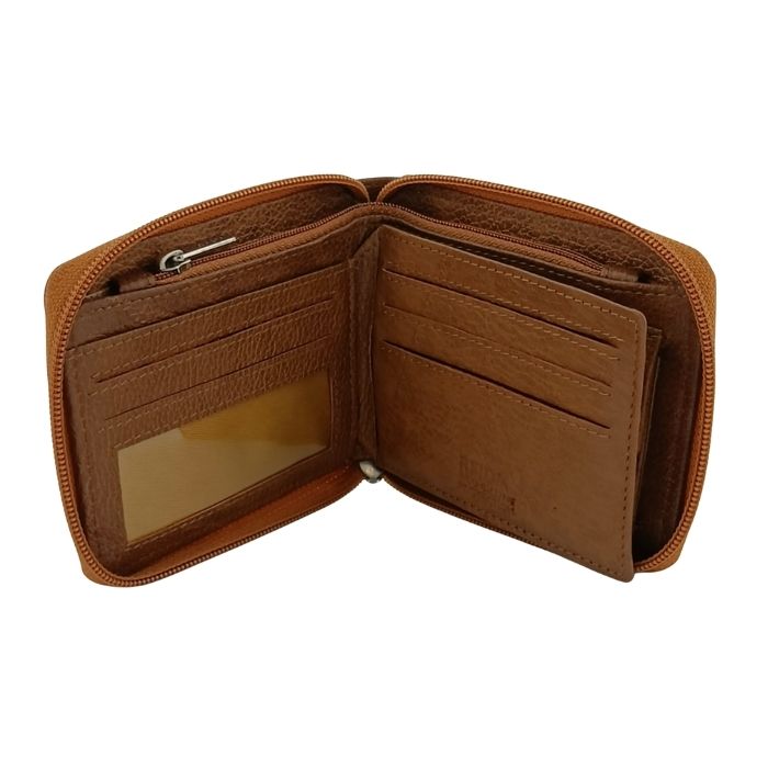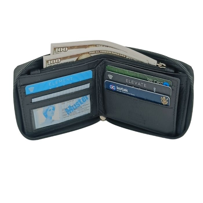 This wallet is designed to protect your cards and cash in style. It features a secure zip-around design. It features RFID blocking layers as well as a coin pocket and transparent identification window.