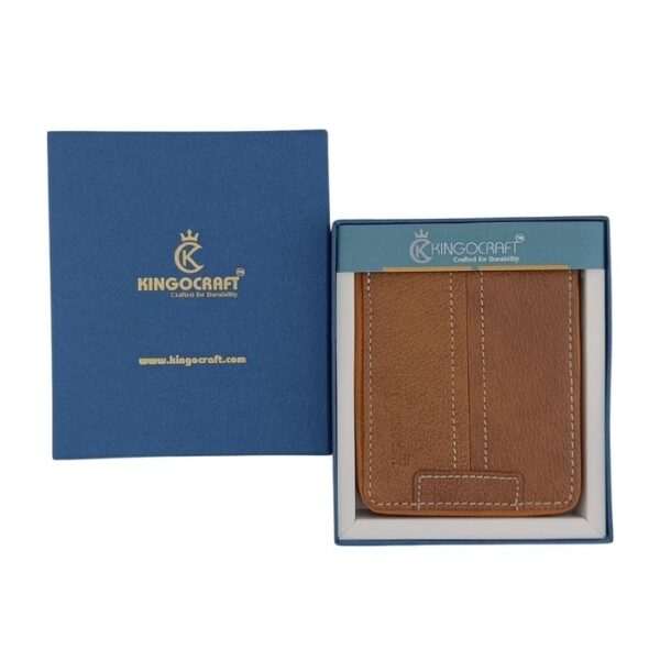 This wallet is available in two elegant colours: classic black or elegant tan brown. It stands out because of its functionality, finish, and stylish look. This KingoCraft wallet is perfect for the office, travel, or as a gift.